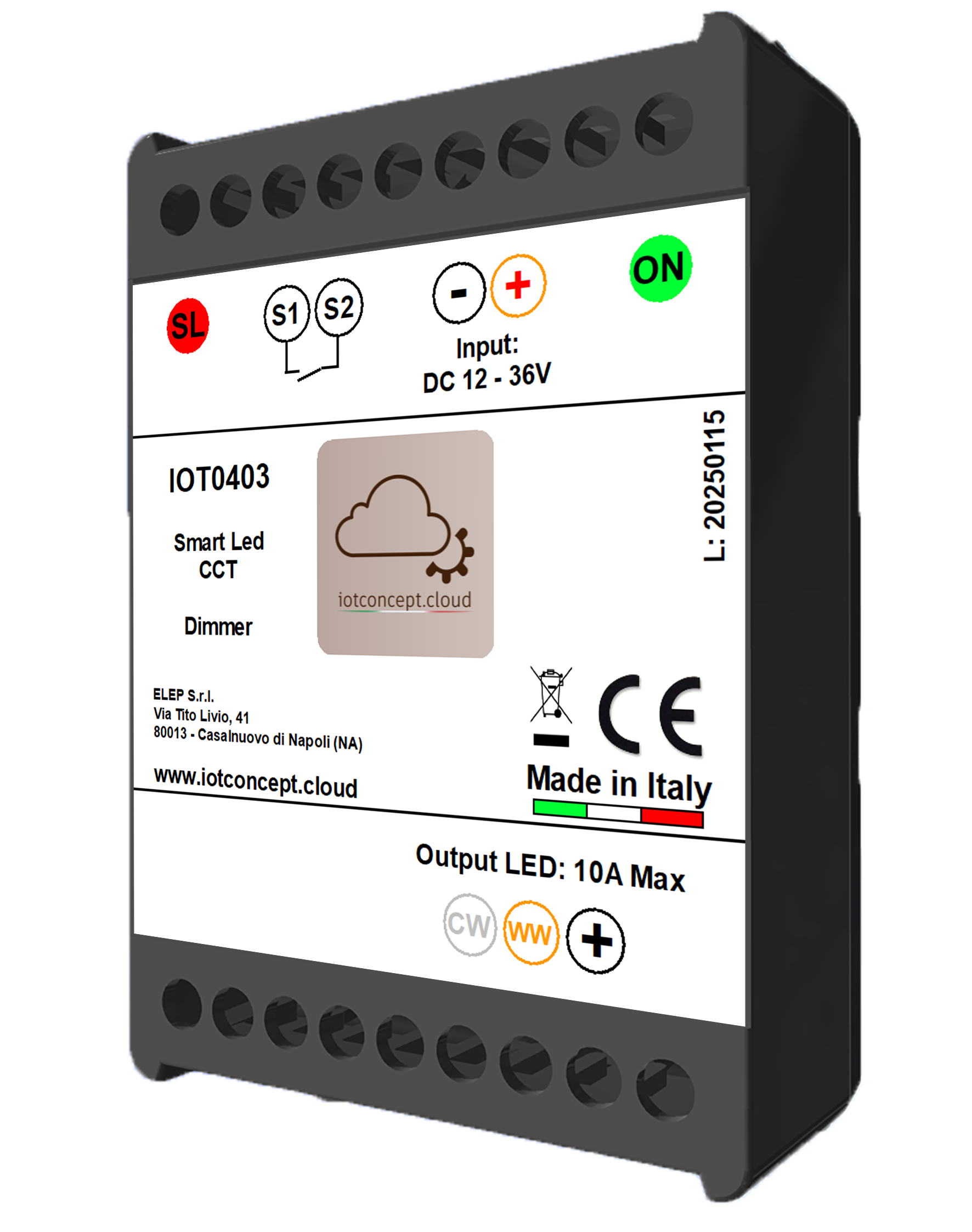 Concepito per il controllo dei LED CCT doppia colorazione bianco/freddo