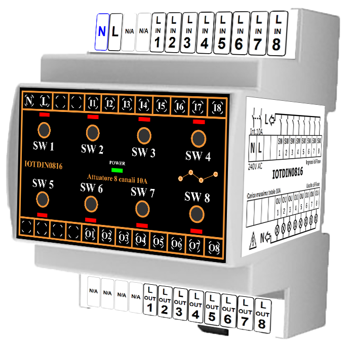 IOTDIN0816 - Attuatore Smart a 8 Canali